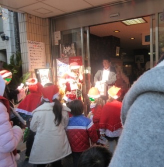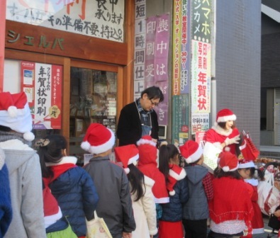 クリスマスは、商店街に御礼、お遊戯風ゴスペル披露、プレゼント交換のプレゼント回収が