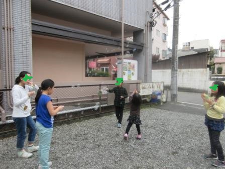 最後は、シャボン玉(こちらも生徒が自主的に持参していた)で遊ぶ。