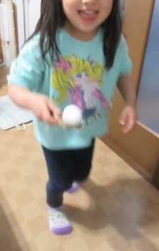 火曜日のみ、残念ながら、大雨で、室内でのegg huntやspoon egg raceとなりました。