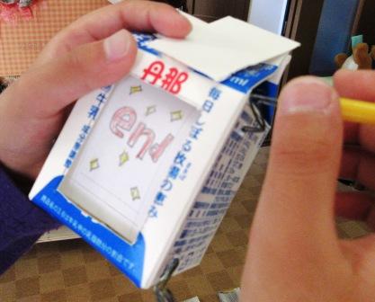 新年度最初の英語図工では、牛乳パックシアターを作りました。