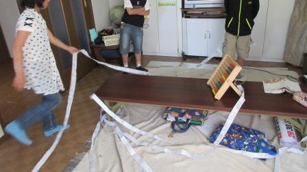 ただし、3つ並べた黒豆のうち、真ん中の黒豆を倒すと、罰ゲーム。黒豆でひざを叩かれます。