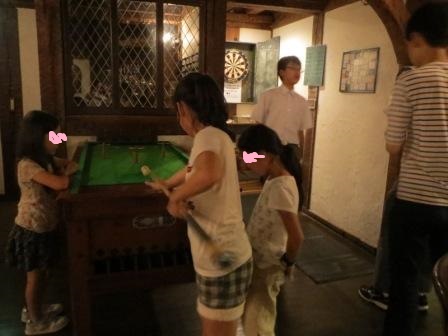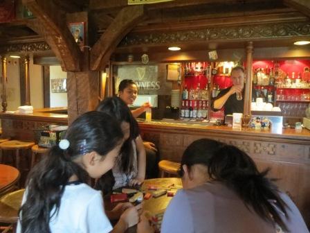 換金したお金をもって、パブへ。それぞれにジュースを注文してもらい、 ダーツやビリヤードを楽しむ。