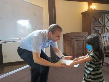 ひとりずつに表彰状を授与してくれ、トランプマジックを見せてくれました。