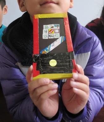 英語☆図工で、ちょっと大作である、スマホ(smart phone)作り。