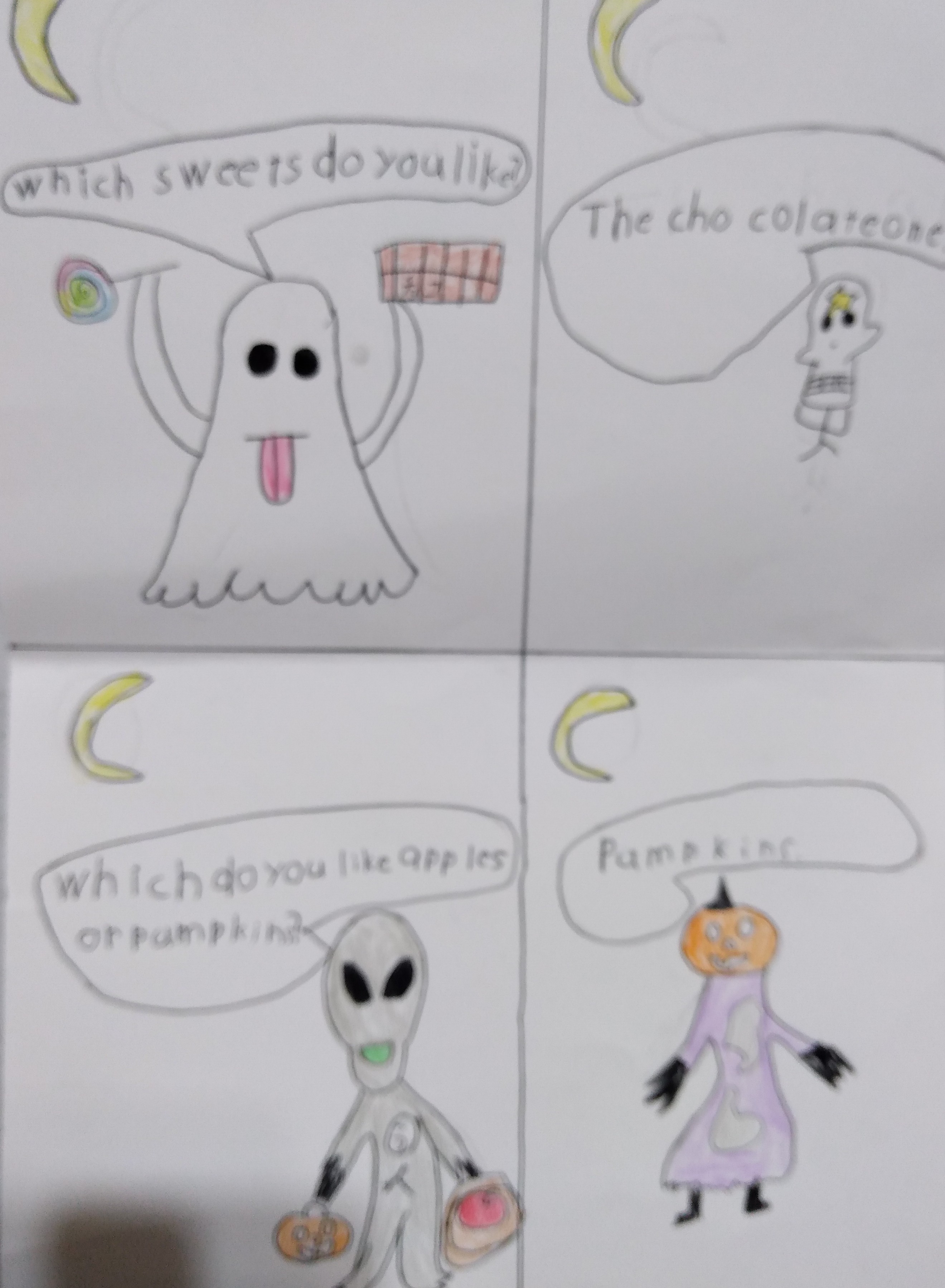 出題した高学年たちは、みんなが正解になるよう機転を聞かせてパンプキンとジャコランタンです。やグリフィンドールからきた魔女です。など即興で答えを変えてくれた。