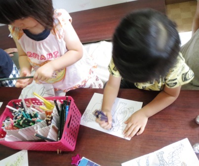 ”ティンガティンガ”。。。っぽい下絵を私が描いて、みんなに塗り絵してもらいました☆