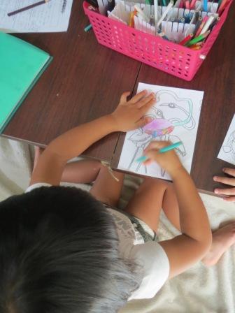 ティンガティンガは形や色がとても自由なので、塗り絵とは言え、手こずるかと
