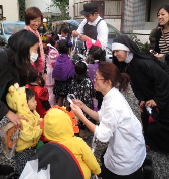 3時間も歩くので、子どもたちに飽きられないように、お菓子の詰めあわせ方を一箇所一箇所変えています。