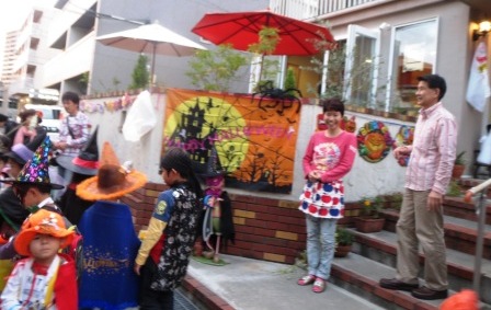 今年は台風の影響で、なんと延期の延期。。もはや予備日でもない、予定外の日に、しかも商店街のハロウィンイベント終了後に、1時間遅れの時間に、やらせていただきました。