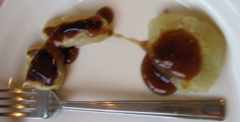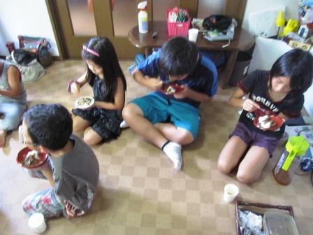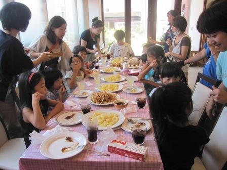 Peter likes apple pieの替え歌、Potato dumplings, potato dumplings, Chef likes potato dumplings, So do I, So do I. と合唱後 みんなで実食!