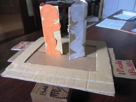 今月はORTの『The Go-kart』の"Biff pushed. Chip pulled.They had a fight. ”を連想させる工作をと、紙相撲にしました。