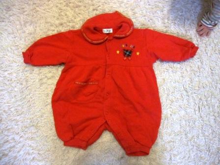 右画像の古くなったカバーオール(70cm)をリメイクしました!