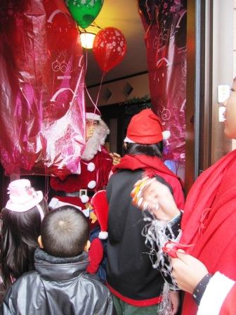 レストランとかおもちゃ屋さんなら、中のお客さんもよろこんでくれた。中には、お客のこどもが寄ってきてサンタに握手をせがんだりも。