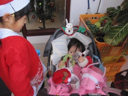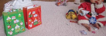 サンタベビー服も毛布の下にほとんど隠れてました。