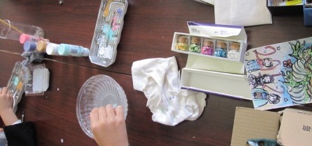 昨年は色紙でしたが、今年は各自不用な小物を持ってきてもらい、