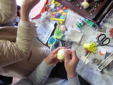今年の和風イベントは『色紙に絵を描いて、金箔で飾りつけよう!』です。