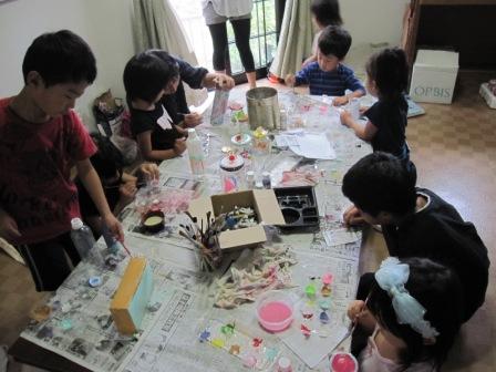 今年の2部は、自宅にあるゴミ(空き瓶、空き缶、割り箸)にトールペインティングして、