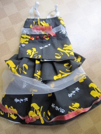 ←あまった布で、衣装を準備できない生徒用に、ドレスを作りました!
