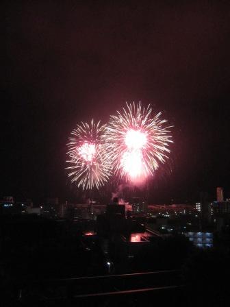 旅館の屋上から見る花火は綺麗で見やすく、風情がありました。贅沢~~