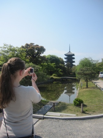 私と留学生だけ、朝のうちに京都に行き、駅周辺、東寺の五重塔や三十三間堂など多くのお寺を参拝。