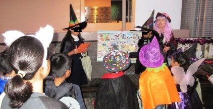 今年もキャンディーレイを作ってくださいました。旦那さんも英語が得意でいらっしゃり、こどもたちに質問をしてくださりました。御礼に、新人低学年2人が自作の絵本、小3の女の子が2年前につくった絵本を朗読しました。