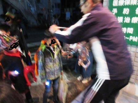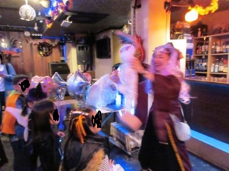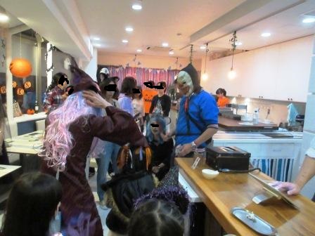 丁度、貸切でハロウィンパーティーをされているとのことで、そこに訪問、お客さんにトリックオアトリートしていただけました。 どちらもモンスターで面白かったです。